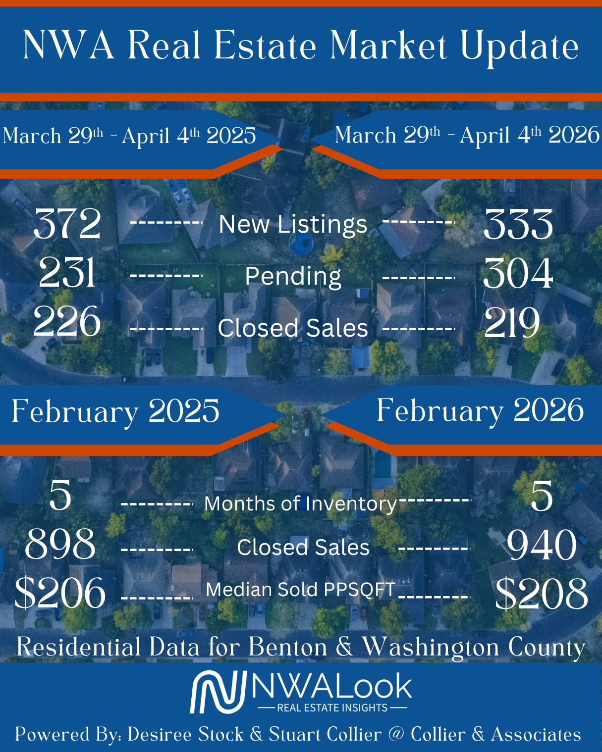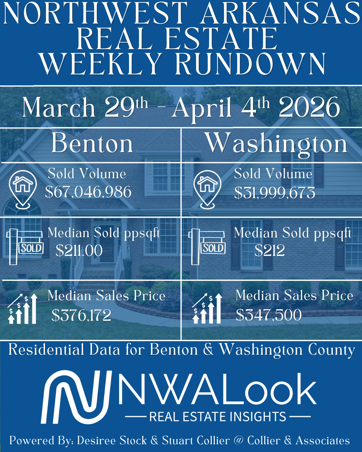 This newsletter is provided strictly for informational purposes and is not intended to solicit or interfere with clients who are already represented by another real estate professional. We are happy to work with individuals who are not currently represented; our intent is to keep the public informed about market activity and community updates. The information contained herein is based on sources and information deemed reliable but is not guaranteed to be accurate, complete, or applicable to every situation. NWALook and any associated parties assume no liability for any errors or omissions in the content of this newsletter or any actions taken based on the information provided. By reading this newsletter, you agree to hold NWALook and any affiliates harmless from any and all claims, liabilities, or damages arising from or related to your use of the information provided.