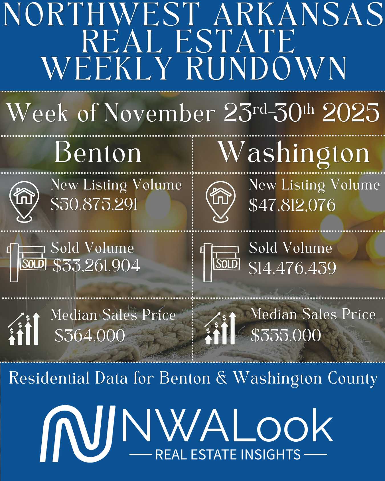 This newsletter is provided strictly for informational purposes and is not intended to solicit or interfere with clients who are already represented by another real estate professional. We are happy to work with individuals who are not currently represented; our intent is to keep the public informed about market activity and community updates. The information contained herein is based on sources and information deemed reliable but is not guaranteed to be accurate, complete, or applicable to every situation. NWALook and any associated parties assume no liability for any errors or omissions in the content of this newsletter or any actions taken based on the information provided. By reading this newsletter, you agree to hold NWALook and any affiliates harmless from any and all claims, liabilities, or damages arising from or related to your use of the information provided.