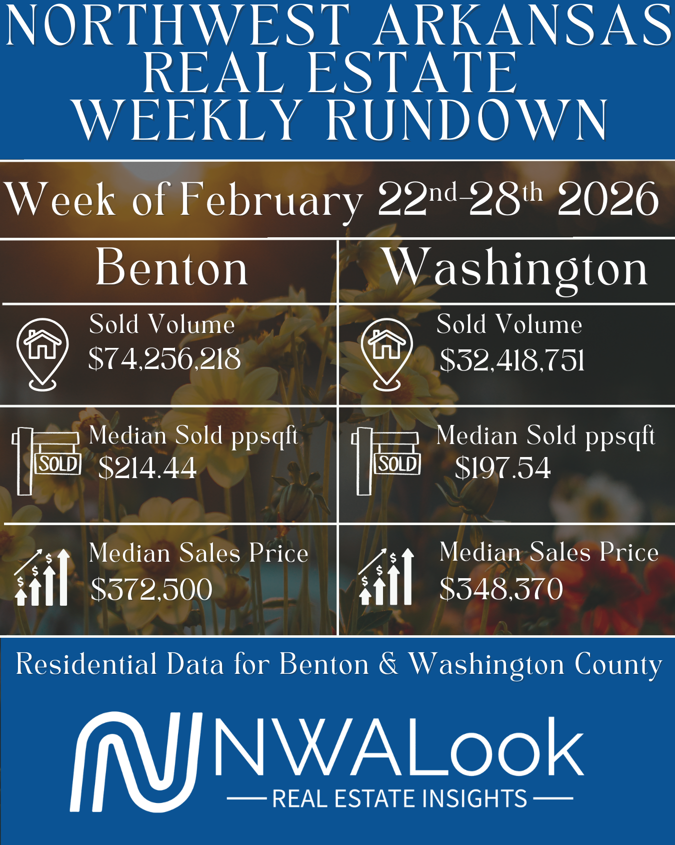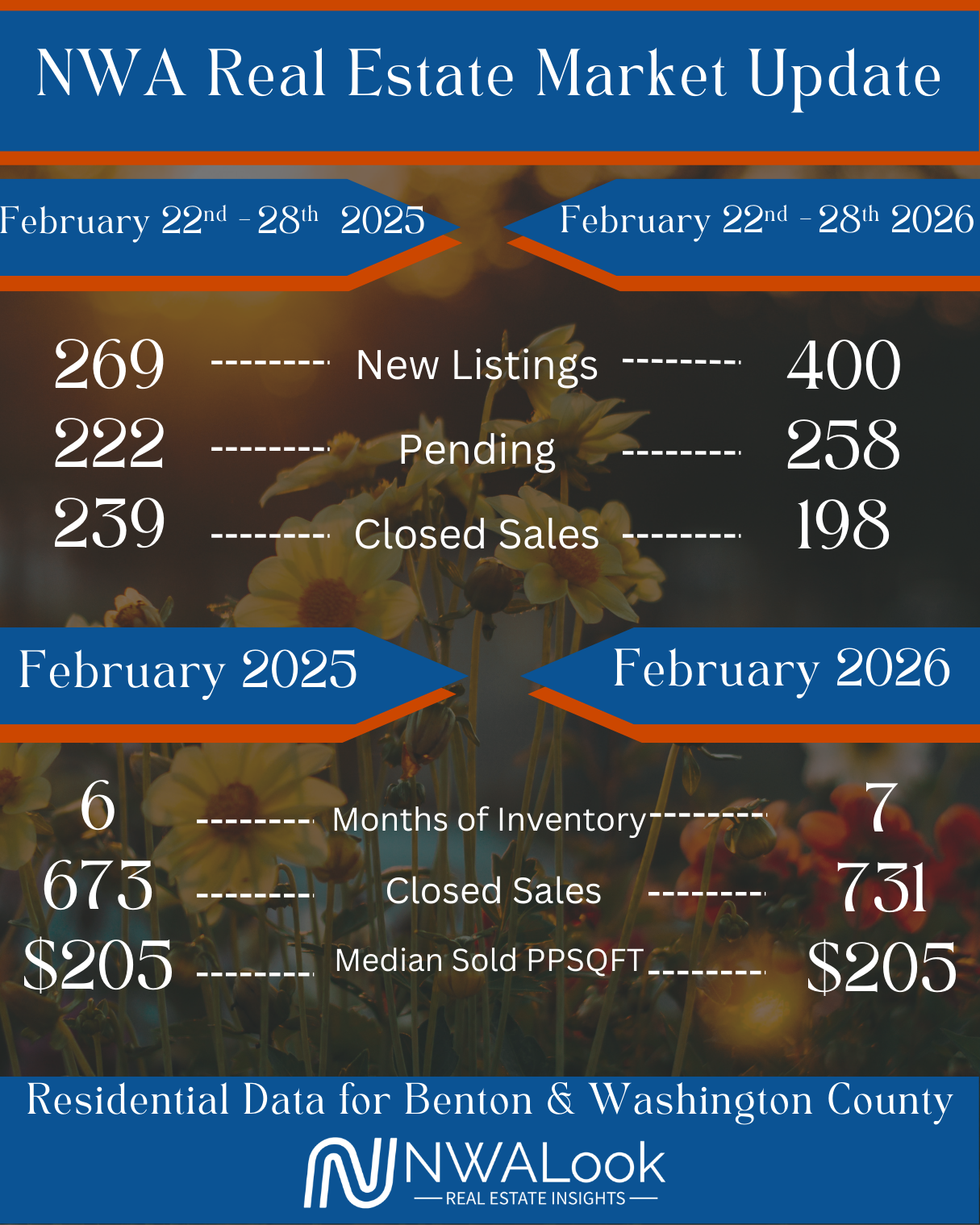 This newsletter is provided strictly for informational purposes and is not intended to solicit or interfere with clients who are already represented by another real estate professional. We are happy to work with individuals who are not currently represented; our intent is to keep the public informed about market activity and community updates. The information contained herein is based on sources and information deemed reliable but is not guaranteed to be accurate, complete, or applicable to every situation. NWALook and any associated parties assume no liability for any errors or omissions in the content of this newsletter or any actions taken based on the information provided. By reading this newsletter, you agree to hold NWALook and any affiliates harmless from any and all claims, liabilities, or damages arising from or related to your use of the information provided.