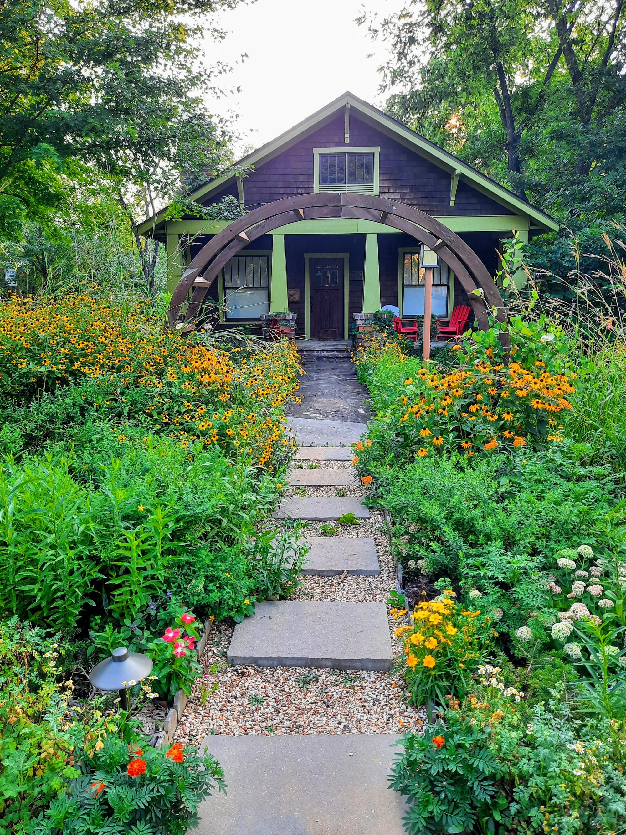 Don’t assume you’ll have to settle for a mess of weeds if you go native. In a sunny bed, you can create a gorgeous stylized prairie of little bluestem, purple coneflower, black eyed susans, goldenrod, and asters, while in a shady area, you can create a lush blanket of wild violets, columbine, bluebells, ferns, and sedges.