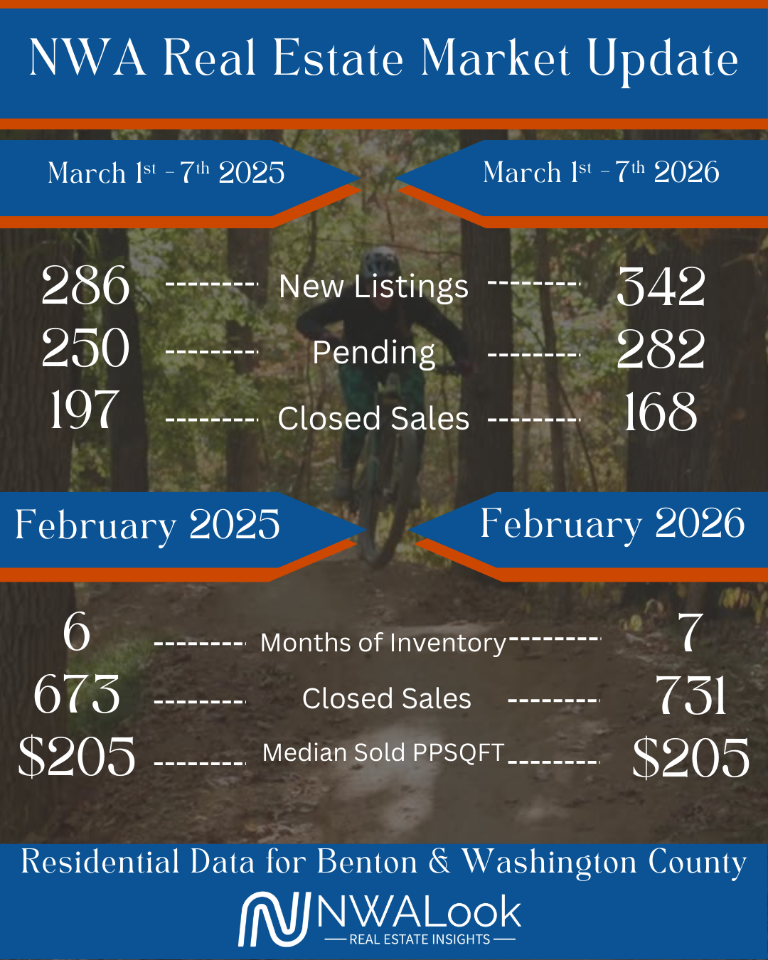 The Northwest Arkansas real estate market continued to show steady activity throughout February 2026. While winter months traditionally bring slightly slower activity compared to spring and summer, buyer demand remained consistent across much of the region. Below is a NWALook at town-by-town breakdown with new listings, pending activity, average sales prices, and overall market movement.